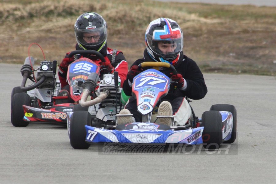 Stéfano lideró en las primeras vueltas de la serie inicial hasta que el actual campeón de la categoría, su padre Gustavo, entró pasado en una de las curvas del trazado e increíblemente se lo llevó puesto retrasándose ambos.