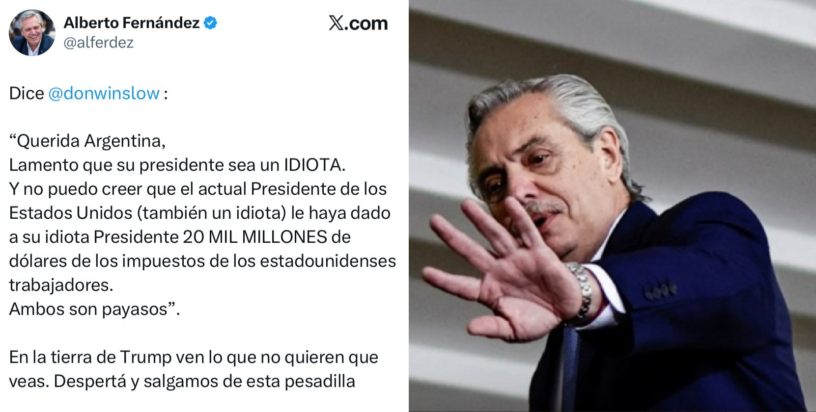 Junto al texto citado del autor norteamericano, el exmandatario argentino añadió: “En la tierra de Trump ven lo que no quieren que veas. Despertá y salgamos de esta pesadilla”.