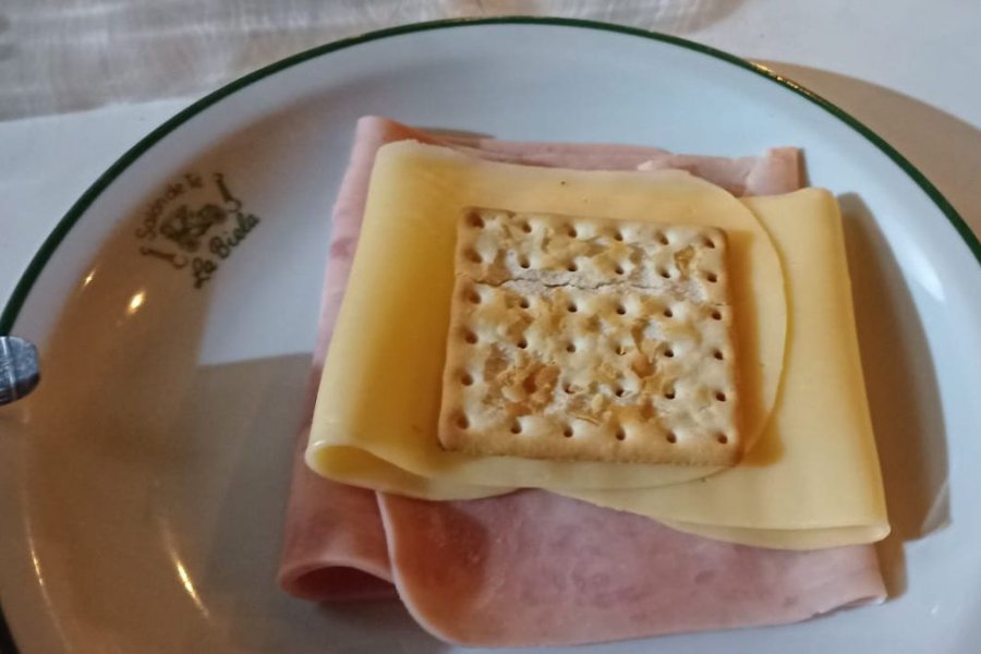 Todo comenzó cuando un cliente insatisfecho comentó lo que había ocurrido cuando le trajeron el pedido. En su cuenta de Twitter, contó que pidió una "traviata" - en relación a la marca de galletitas de agua- y el mozo le sirvió la galletita de agua con una feta de jamón y otra de queso. Hasta ahí todo bien, hasta que llegó la cuenta: $1100 pesos. Indignado, compartió la imagen y rápidamente se viralizó.