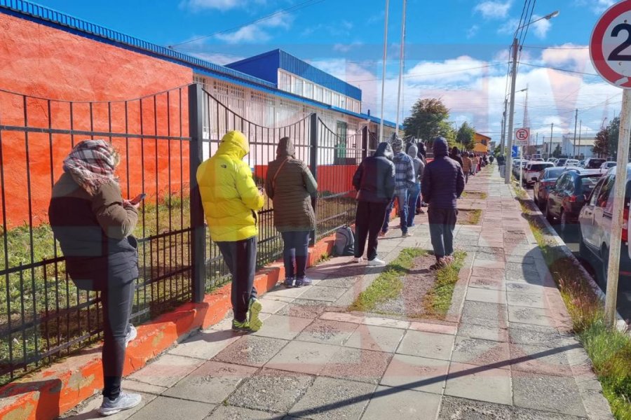 Desde hoy, en la Escuela N° 10 en Río Grande se hacen hisopados para personas asintomáticas. La foto es la misma de la semana pasada. Es decir, lasrgas filas para hisoparse, de tal manera que la primera persona llegó a las 7 de la mañana. Minutos antes que empiecen los hisopados, eran más de 200 metros el largo de la fila.