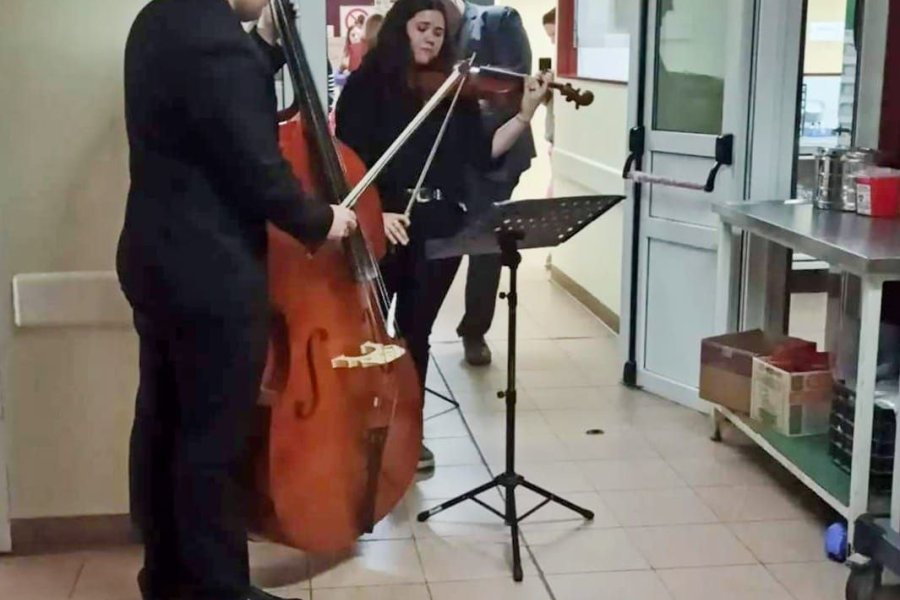 Además, los artistas se acercaron a los pasillos de internación del hospital y tocaron diferentes canciones para los pacientes internados y trabajadores del sector.