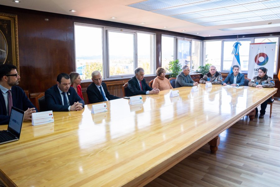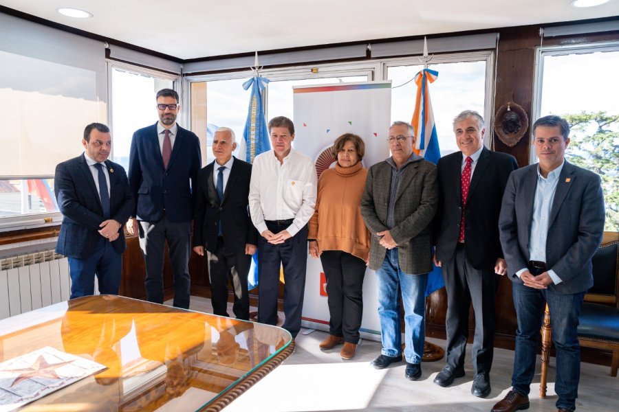 El Gobernador Gustavo Melella junto al Secretario de Malvinas, Antártida, Islas del Atlántico Sur y Asuntos Internacionales, Andrés Dachary; recibieron este lunes en Casa de Gobierno a los Embajadores de los países de Bolivia; Cuba; Pakistán; Palestina; Panamá y Serbia quienes visitaron oficialmente la provincia con motivo de participar de la Agenda prevista para la Conmemoración de los 41 años de la Gesta de Malvinas.