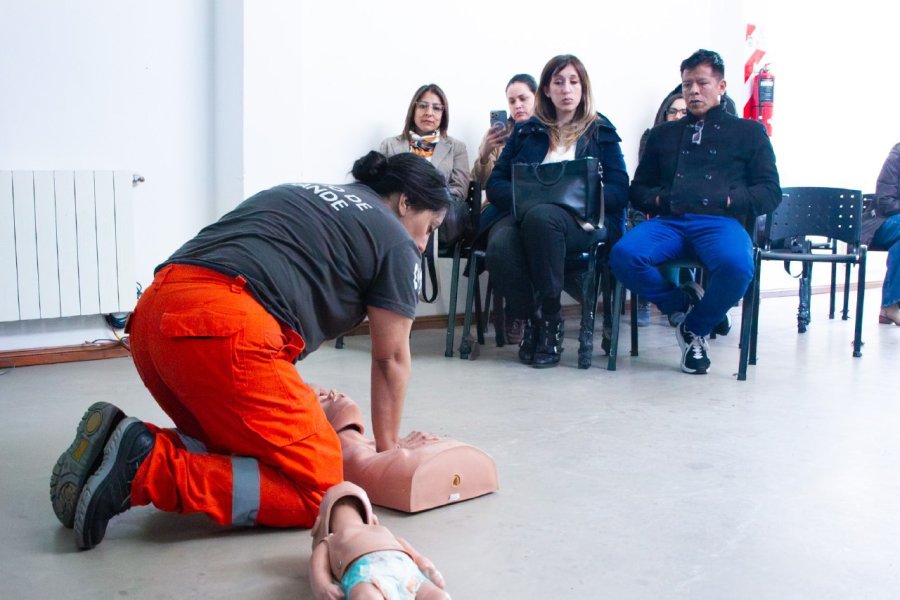 Durante la jornada, las y los trabajadores se capacitaron en temas clave como la activación de números de emergencia, técnicas de RCP, compresiones torácicas, uso del desfibrilador externo automático (DEA) y primeros auxilios generales. Además, se realizaron prácticas para afianzar los conocimientos adquiridos y brindar herramientas concretas que permitan actuar con eficacia ante situaciones críticas.