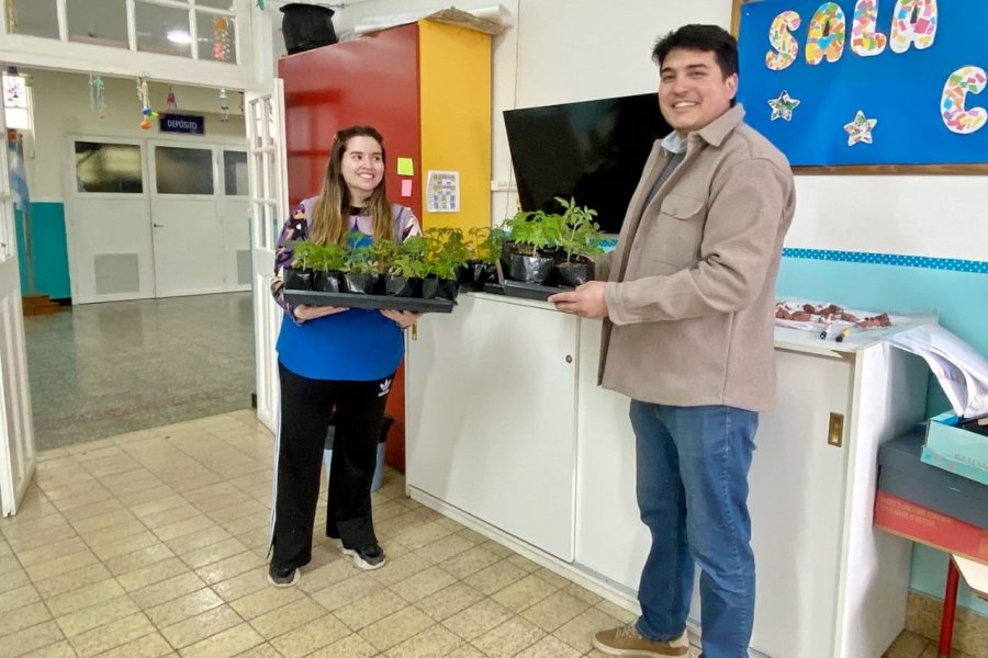 De esta manera, los siguientes establecimientos: Escuela N.° 19, Escuela N.° 7, Escuela N.º 32, Escuela N.° 35, Escuela N.º 14, EMEI, y los jardines N.° 4, N.° 25, Don Bosco, N.° 27, el Colegio Antártida Argentina, y la Escuela Provincial N.º 11 de la Estancia Sara recibieron variedades de plantines de hoja, aromáticas y de fruto, que serán utilizados para el desarrollo de huertas escolares y talleres educativos.