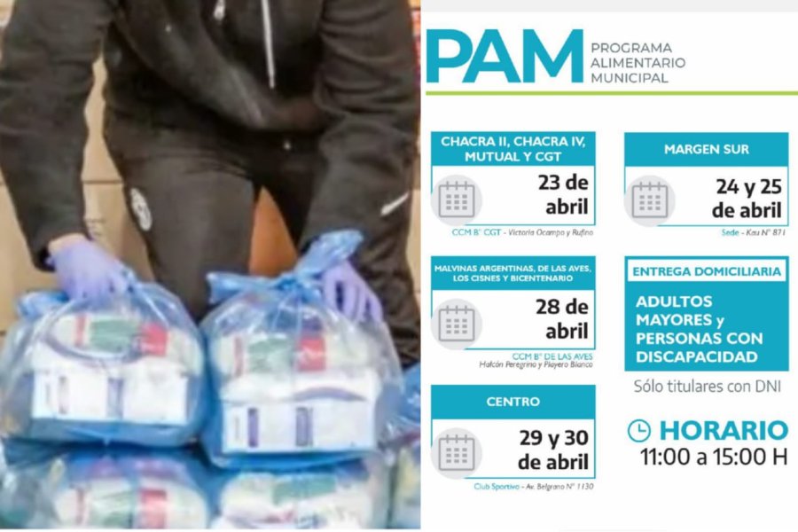 El Municipio de Río Grande informa a las y los beneficiarios del “Programa Alimentario Municipal” que, este miércoles 23 de abril, comenzará la distribución de los módulos a las familias de diferentes puntos de la ciudad. La entrega es únicamente a los y las titulares, de forma presencial, quienes deben acercarse con el DNI entre las 11 y las 15 horas.