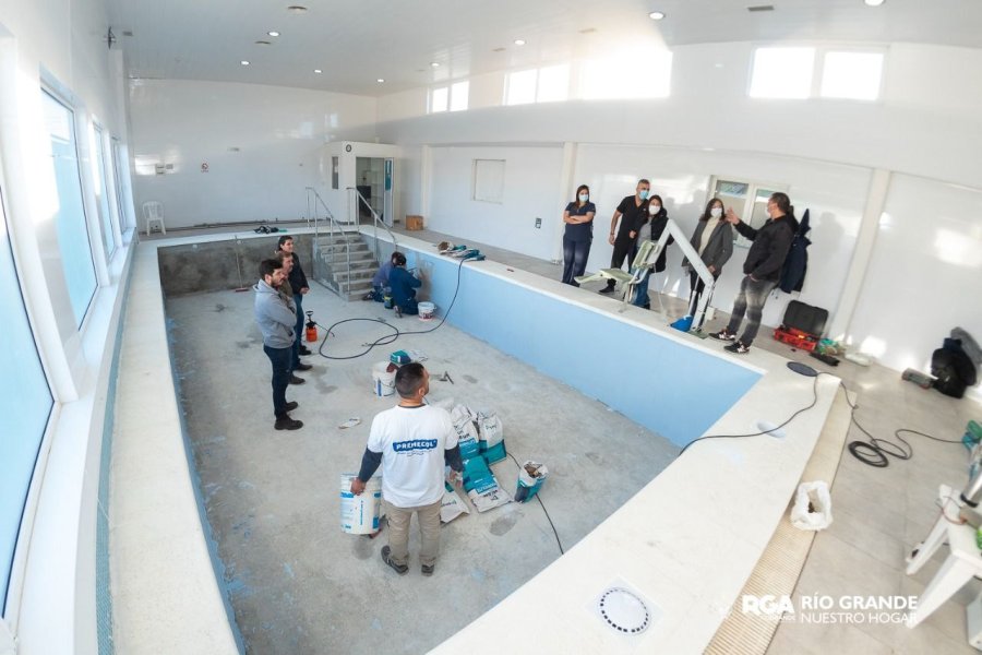 Actualmente, trabajadores se encuentran colocando el revestimiento de la piscina, dado que tiene la terminación adecuada para el tipo de actividades que allí se realizan. Es importante resaltar que, a través de esta obra, se unifica la profundidad de la pileta para darle más altura, lo cual además optimizará los tratamientos terapéuticos.