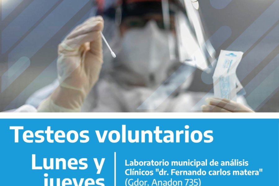 Si querés hisoparte acercate con tu DNI a Laboratorio de Análisis Clínicos y Biología Molecular "Dr. Fernando Carlos Matera", ubicado en Gdor. Anadón 735, de 11 a 13 hs.