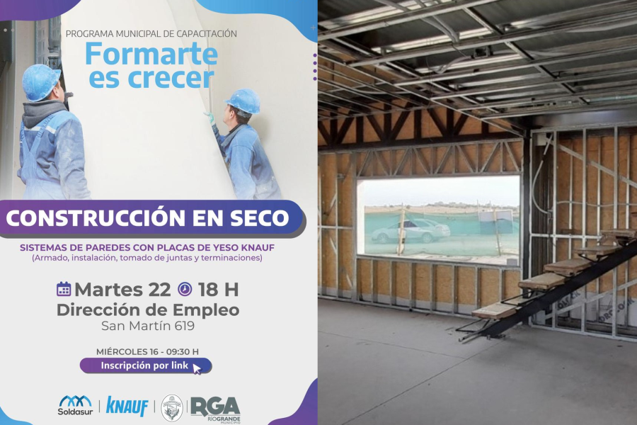 La Dirección de Empleo, dependiente de la Secretaría de Desarrollo Productivo, informa a toda la comunidad que a partir de este miércoles 16 de abril, se abren las inscripciones para el curso de construcción en seco “Sistema de paredes con placas de yeso knauf” armado, instalación, tomado de juntas y terminaciones.