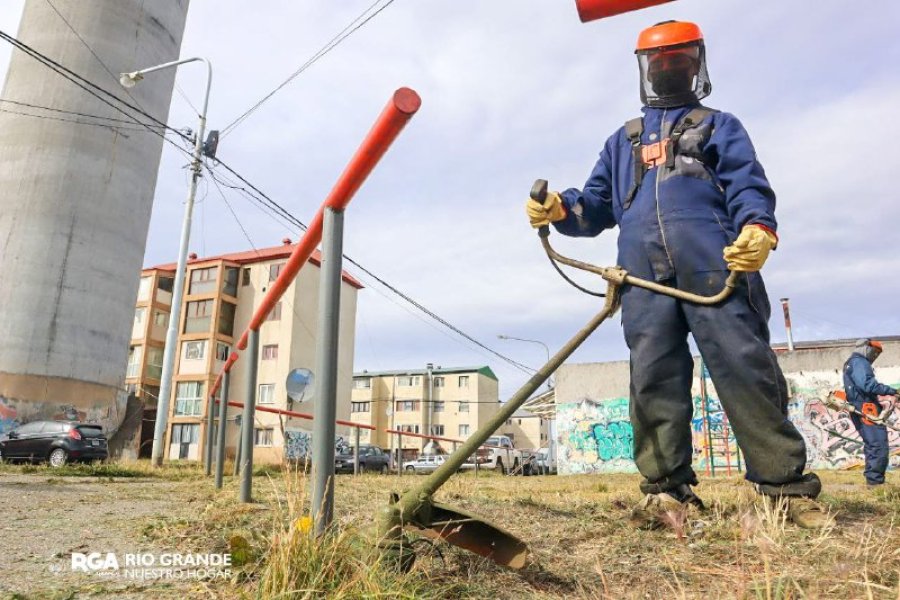 Como parte de las acciones que son prioridad durante la temporada de verano 2022, el Municipio realiza intervenciones en diversos espacios de Río Grande con trabajos de limpieza, embellecimiento y acondicionamiento de espacios verdes con el fin de ponerlos en valor.