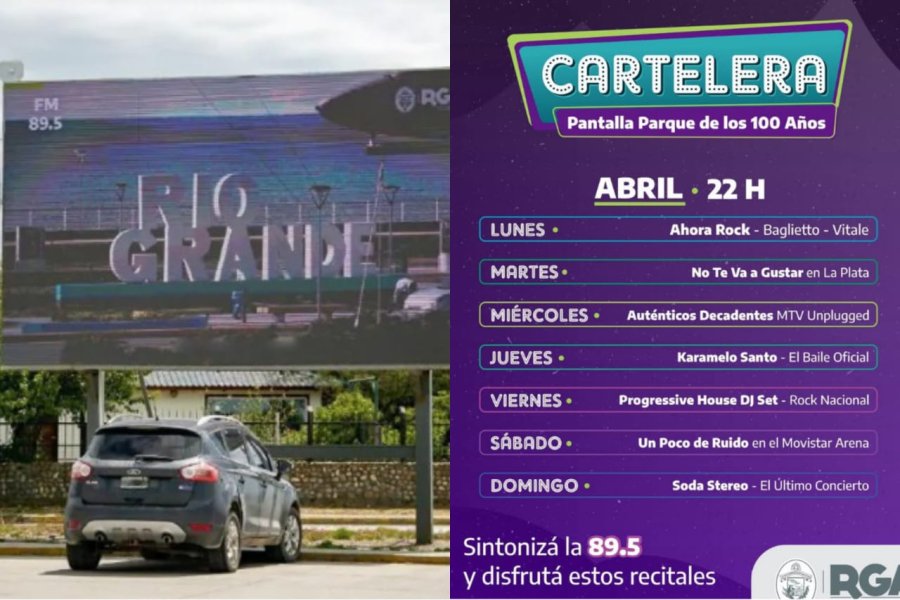 El Municipio de Río Grande propone un nuevo cronograma en la pantalla gigante del estacionamiento del Parque de los 100 Años, el cual se puede disfrutar durante toda la semana.