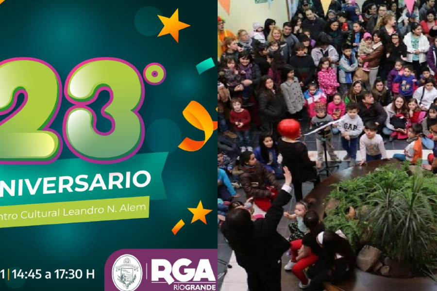 El Municipio de Río Grande invita a la comunidad a festejar los 23 años del Centro Cultural “Leandro N. Alem” con una agenda de actividades que abraza a todas las disciplinas artísticas para el desarrollo y el encuentro de los vecinos y vecinas de la ciudad.