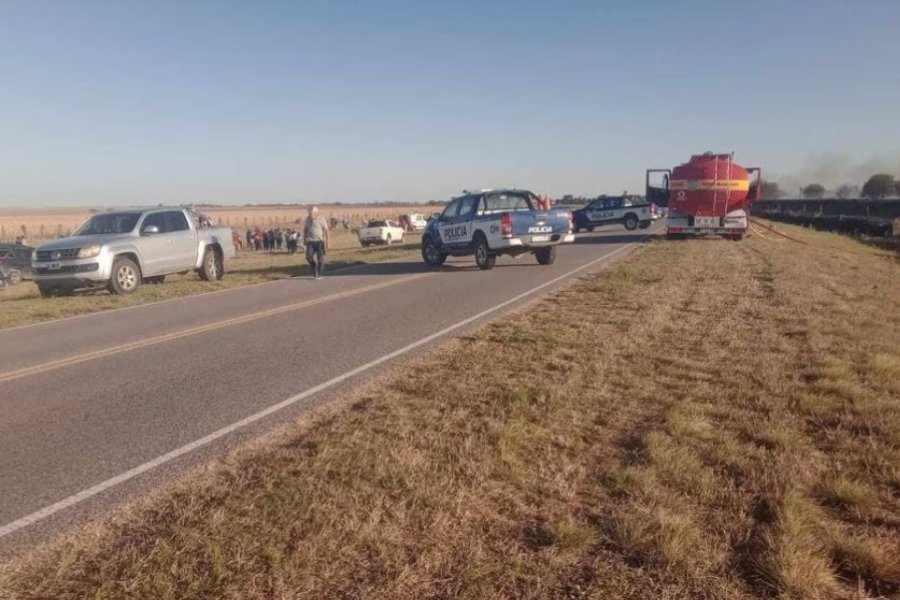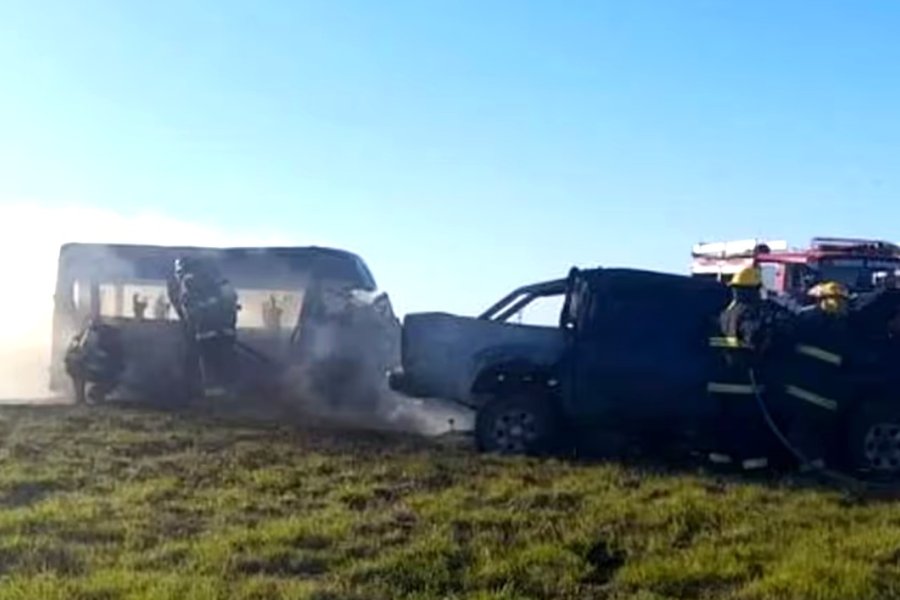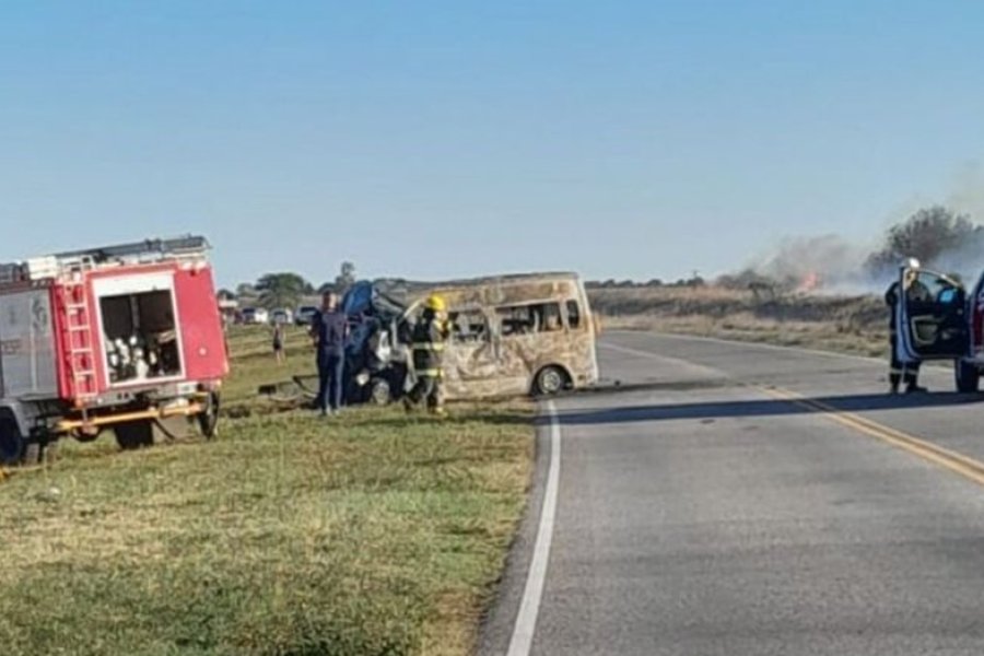 Producto del choque la combi se incendió y generó un incendio forestal en los campos aledaños, por lo que debió intervenir personal de bomberos, para evitar que se expandiera.