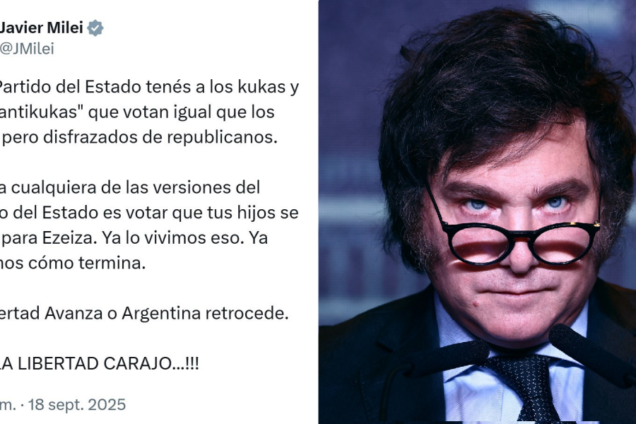 En X (Twitter) publicó: “Votar a cualquiera de las versiones del Partido del Estado es votar que tus hijos se vayan para Ezeiza. Ya lo vivimos eso. Ya sabemos cómo termina”.