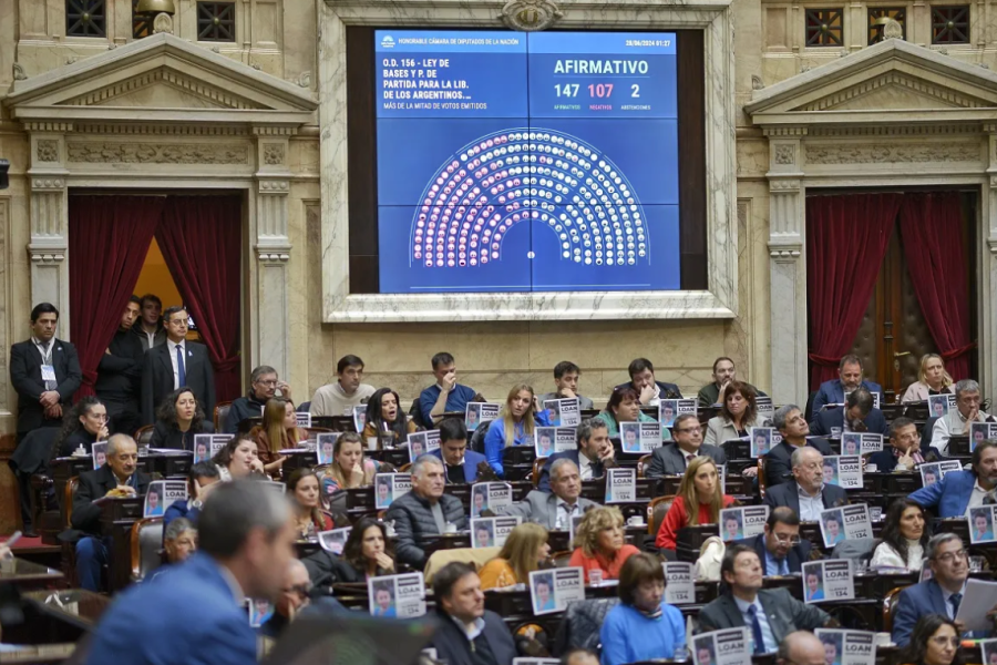 Con una mayoría contundente gracias al apoyo de los bloques de oposición dialoguista, la Ley Bases se aprobó con 147 votos positivos y 107 negativos, estos últimos de Unión por la Patria y de la izquierda. Otros dos diputados se abstuvieron.