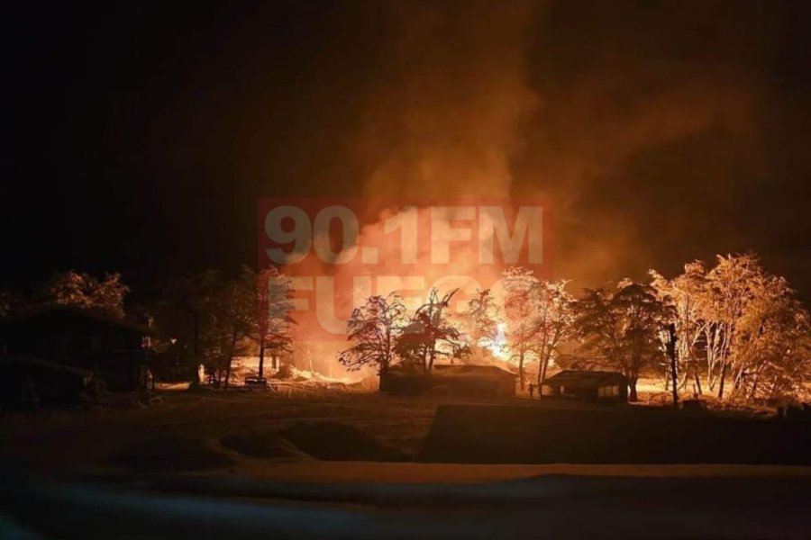 El incendio de importantes dimensiones, afecta al complejo de cabañas que se encuentran en el predio.