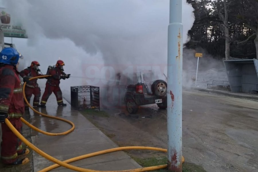 Durante la tarde de este lunes, una camioneta Ford EcoSport fue alcanzada por las llamas mientras circulaba por calle Bahía Primera al 3900. El fuego se desató en la parte delantera del vehículo y avanzó rápidamente, dejando la unidad completamente destruida.