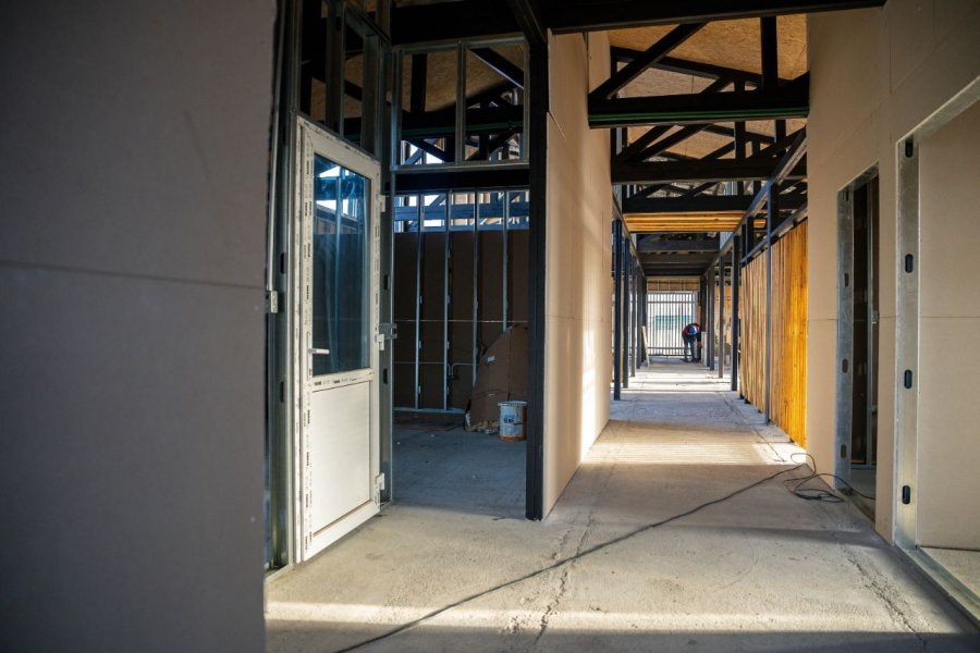 En Ushuaia, se concretó el hormigonado de lo que será el estacionamiento, y ya se realizó la división de espacios internos como cocina; administración; baños para adultos; baño para niñas y niños y talleres. Además se colocaron las aberturas en la totalidad del edificio.