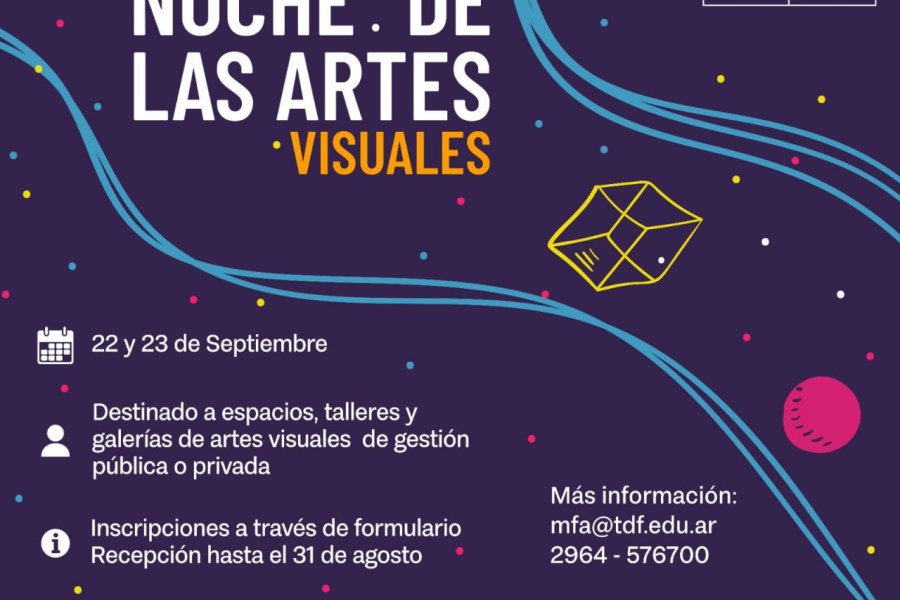 La Secretaría de Cultura de Tierra del Fuego, AIAS a través del Museo Fueguino de Arte ‘Niní Bernardello’, abrió la convocatoria para formar parte de ‘La Noche de las Artes Visuales’ que se desarrollará el 22 y 23 de septiembre en espacios culturales, galerías y talleres artísticos de la provincia.