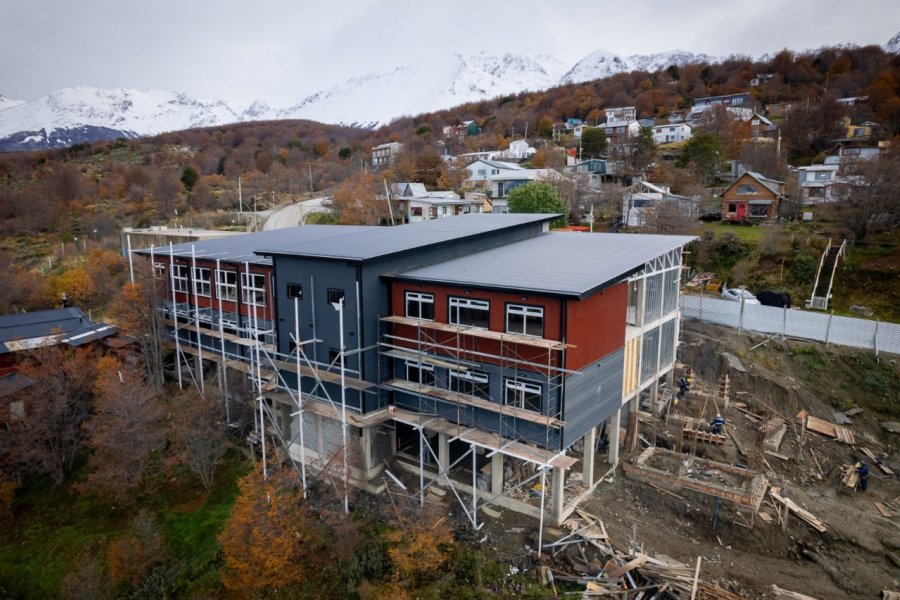 La obra de la nueva Escuela Provincial N°40 ‘María Elena Walsh’ se encuentra ubicada en el Barrio Ecológico de la ciudad de Ushuaia. Cuenta con un presupuesto de alrededor de $800 millones de pesos y es financiada con fondos del CAF, gestionados a través del Gobierno Nacional anterior junto a la Provincia.