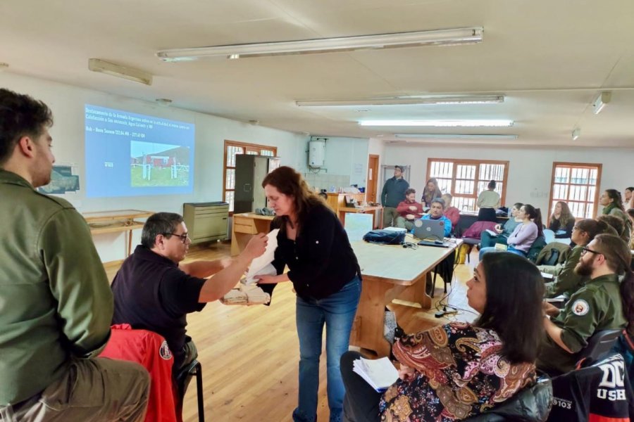 Durante la actividad desarrollada en el SUM de Piscicultura, se llevó a cabo un encuentro que contó con la participación del área de Defensa Civil del Municipio de Ushuaia, brigadistas, guardaparques y personal técnico de la Secretaría de Ambiente. La instancia de trabajo interno tuvo como objetivo consolidar un equipo de planificación y fortalecer el intercambio de información clave sobre la situación actual del territorio.