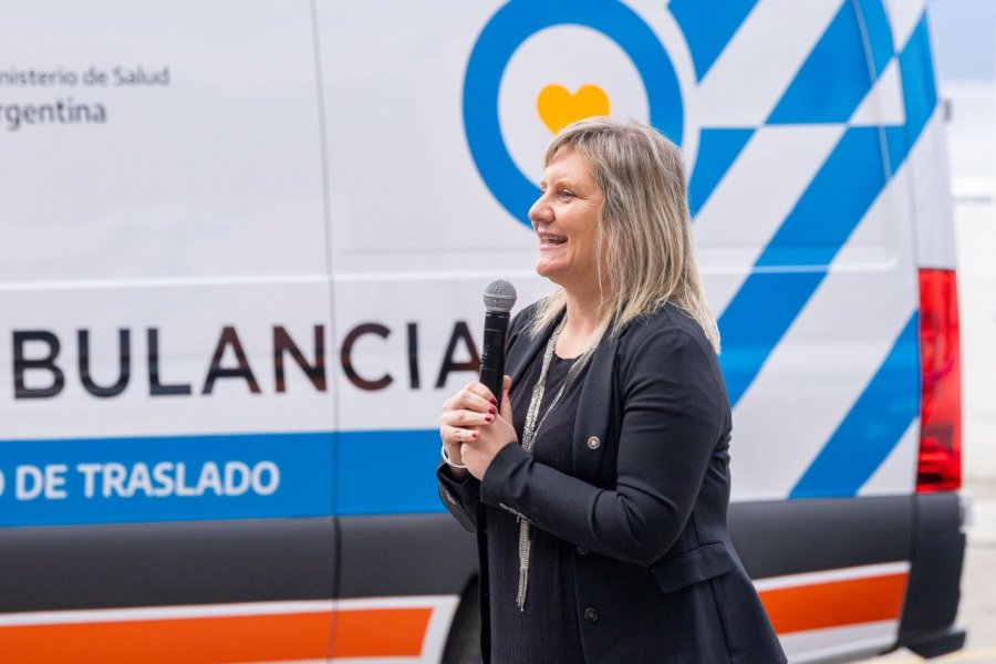 Judit Di Giglio, ministra de Salud de la Provincia, tomó contacto con la prensa luego del acto de entrega de 6 nuevas ambulancias para Tierra del Fuego y manifestó: “Renovar la la flota vehicular del ministerio de salud es importantísimo, porque sabemos que por ley cada vehículo tiene una vida útil de 10 años”.
