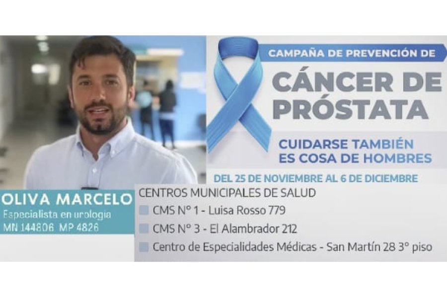 Desde el pasado martes 26 de noviembre, se desarrolla en Río Grande la Campaña de Prevención del Cáncer de Próstata, bajo el lema “Cuidarse también es cosa de hombres”. La iniciativa está destinada a hombres y diversidades mayores de 45 años, quienes podrán acceder a consultas gratuitas y pruebas de detección temprana.