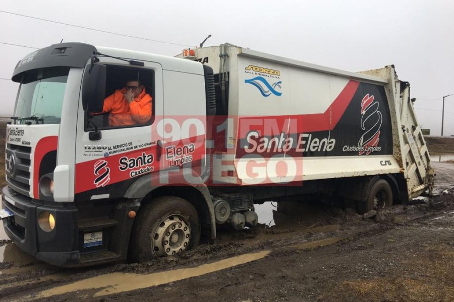 A 300 metros del Autódromo de la ciudad de Río Grande, una unidad de la empresa de recolección “Santa Elena” no pudo continuar su recorrido al quedar metido dentro del barro. Tras varios intentos de asistencia de otra de las unidades, aún no pudo ser liberado.