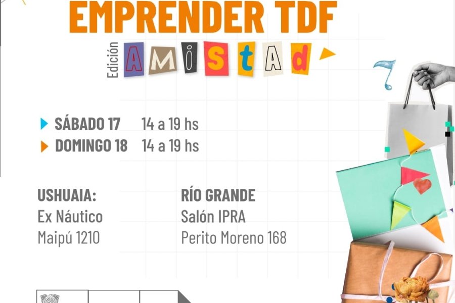 El Gobierno de la Provincia de Tierra del Fuego invita a la comunidad a participar de la Edición Amistad de la jornada "Emprender TDF" que se realiza hoy sábado 17 y mañana domingo 18 de julio de 14hs a 19hs.