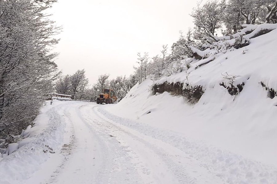 Desde María Cristina a Tolhuin la calzada se presenta con nieve compactada.