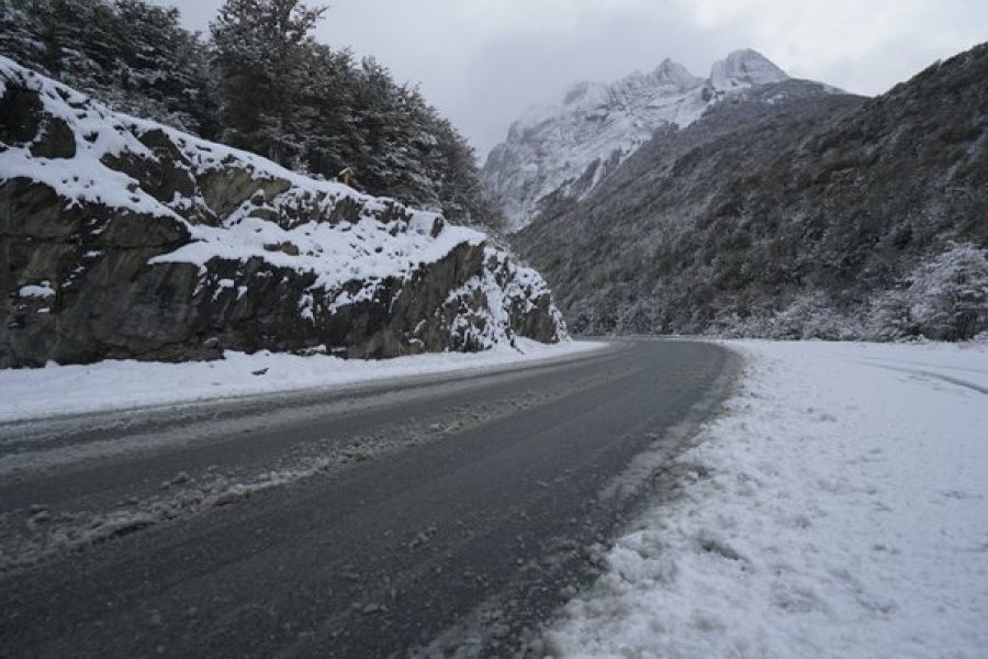 Finalmente, entre Lago Escondido y Ushuaia el tramo presenta mojado, a excepción del sector del Paso Garibaldi donde se visualiza escarcha en la calzada.