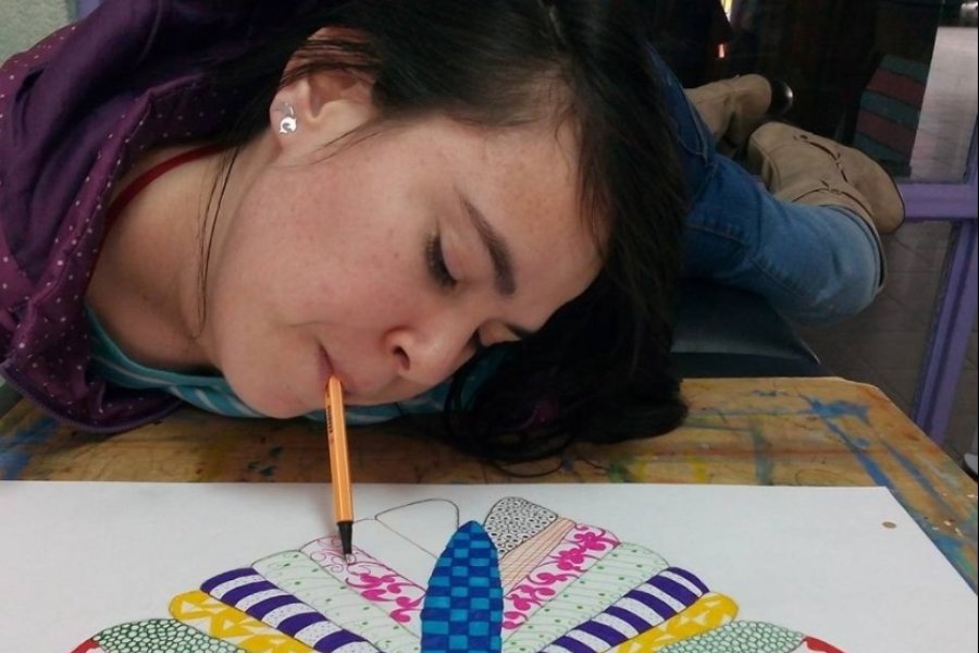 “Yo tengo una enfermedad que se llama artrogriposis múltiple congénita, ando en silla de ruedas y los cuadros que yo realizo tienen la particularidad de que los hago con la boca. Mis padres fallecieron cuando era chiquita, entonces mi hermana se hizo cargo de mí. En nuestra familia el que siempre trabajó fue mi cuñado, mi hermana es ama de casa, y este año me dediqué a vender mis pinturas para conseguir un poco más de dinero”, explicó Mariana.