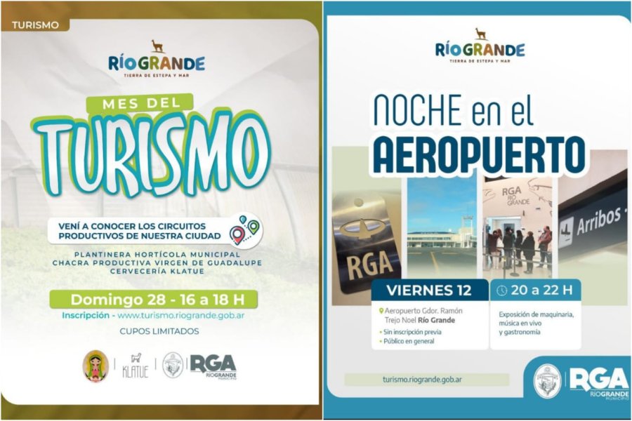 “Una noche en el Aeropuerto” es una jornada recreativa que se realizará este viernes 12 de septiembre, a las 20 horas. Por ello, el Municipio de Río Grande invita a la comunidad a compartir esta velada en el aeropuerto Ramón Trejo Noel. Allí conocerán las máquinas con las que se hace el mantenimiento de pistas. Las mismas estarán exhibidas en el estacionamiento.