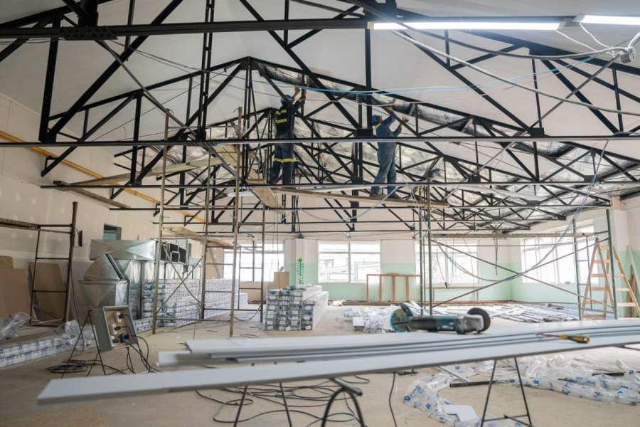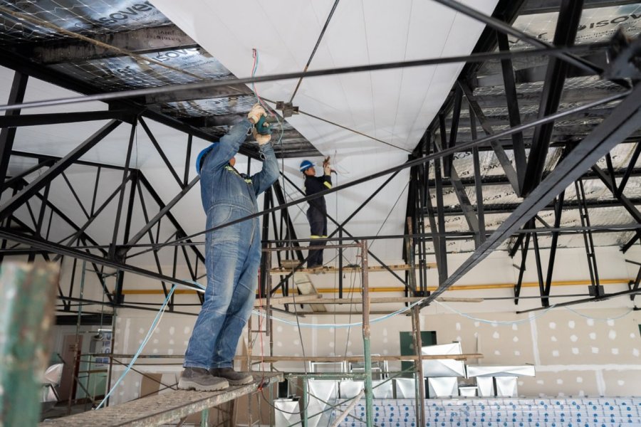 Entre las tareas más importantes se destacan la colocación del cielorraso de PVC, la adecuación e instalación de conductos de calefacción y el piso del SUM, entre otros.